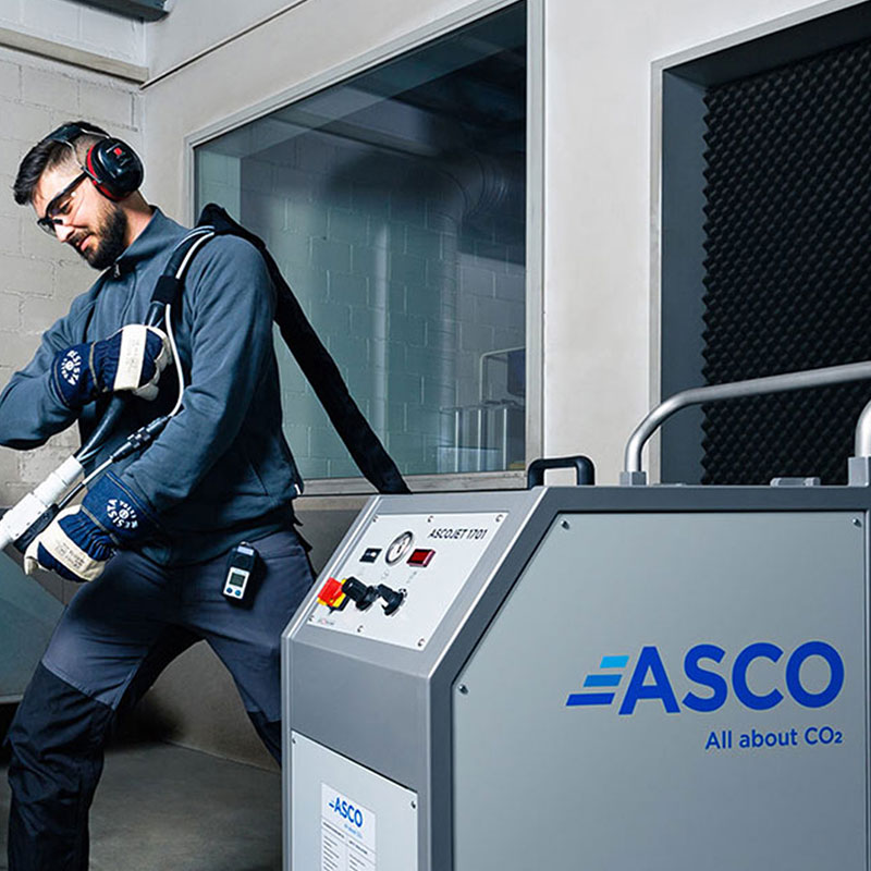 The ASCOJET® 1701 is a compact, mobile dry ice blasting unit featuring a handy one hose system which has been specially developed to maintain efficient cleaning with contaminants which are harder to remove.